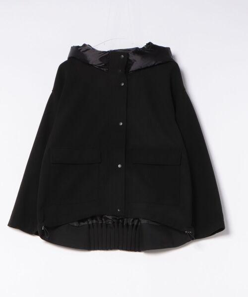 本体: ポリエステル90%, レーヨン10%, フード部分: ナイロン:100%, 詰め物: ダウン90%, フェザー10%, 本体裏: ポリエステル100%, 裾裏: ポリエステル85%, 綿15%