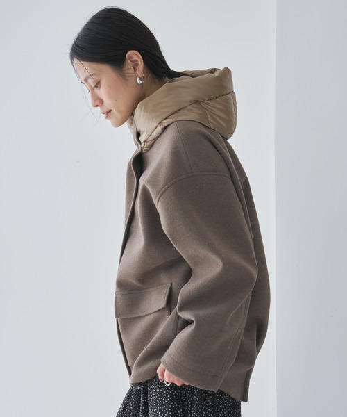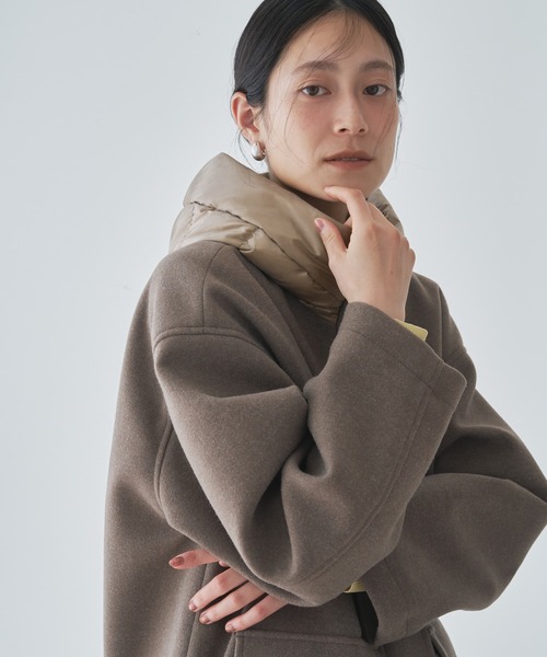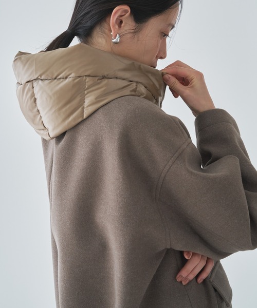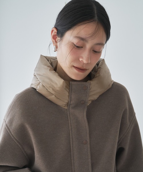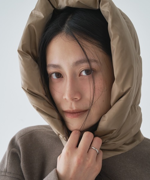 ●フードにボリュームのあるダウン生地を使用し小顔効果も◎