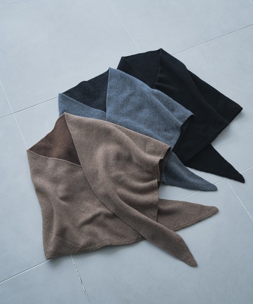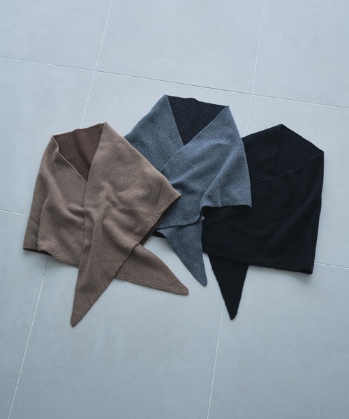 肩掛けができる三角ストールで、多様なスタイリングが可能。