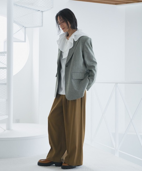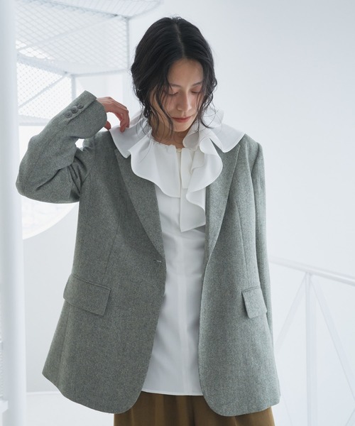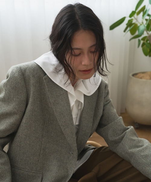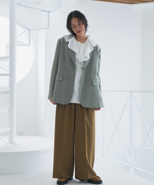 マニッシュ感溢れるツイードジャケット。
