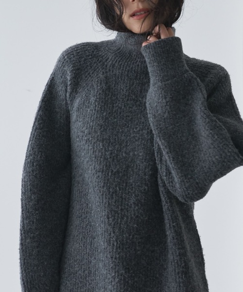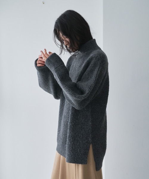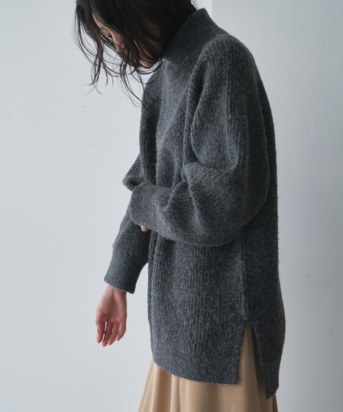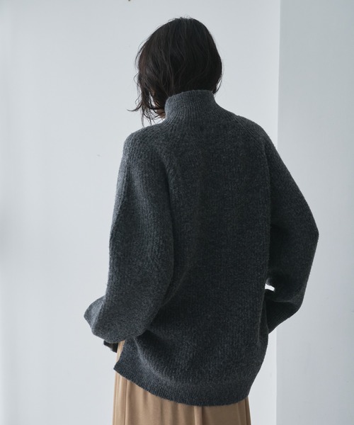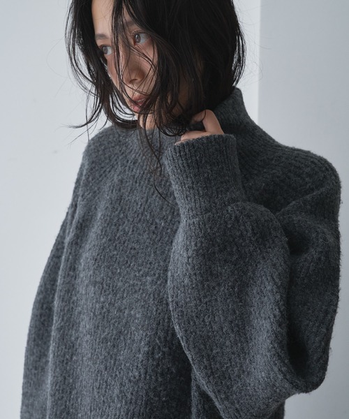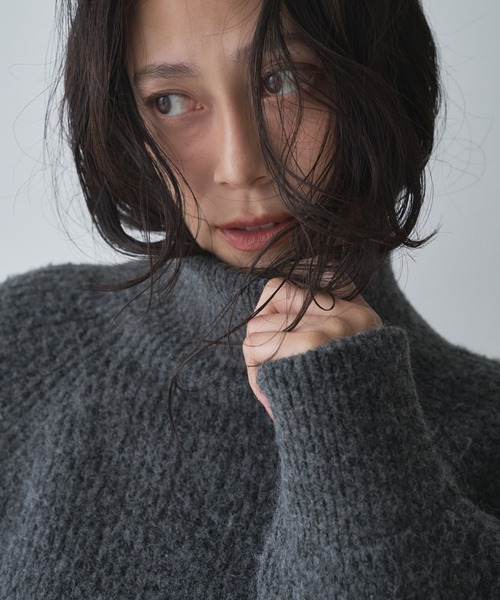 肩畦編みの立体的な凹凸感が表情豊かな風合いを生み出します。