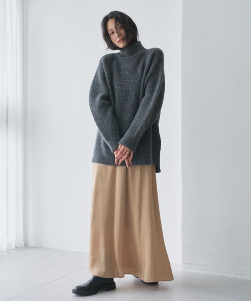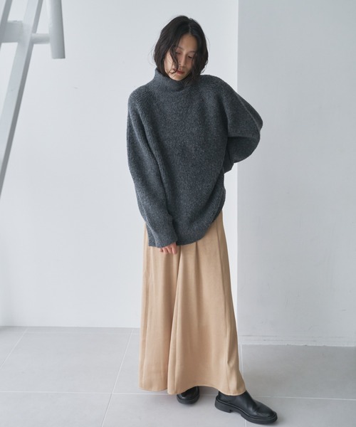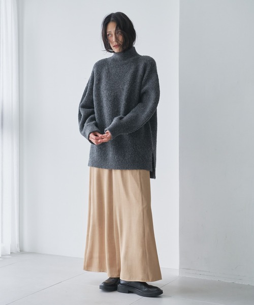 ●長めの着丈と首元を覆うハイネックデザインで寒い冬も安心