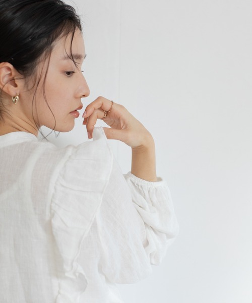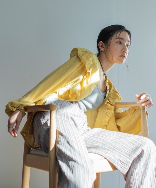 甘織りのリネンを使用することで、ロマンティックなイメージを大人カジュアルに仕上げました。