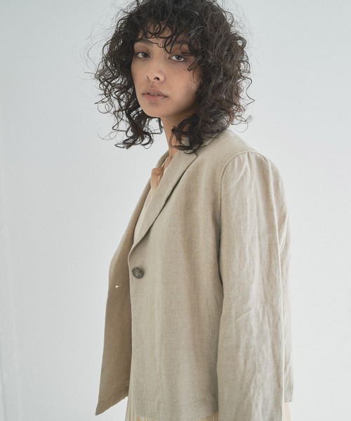 リネンのナチュラルな雰囲気が大人カジュアルなテーラードジャケット。