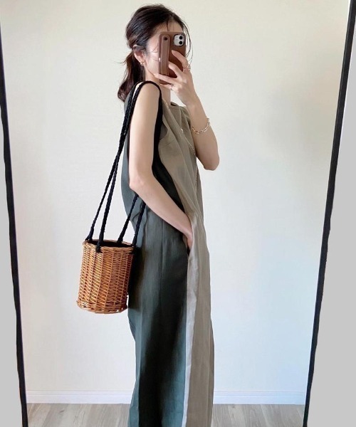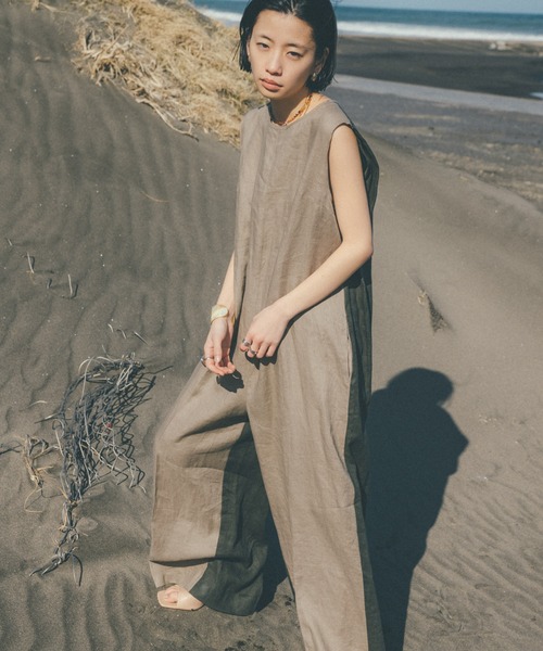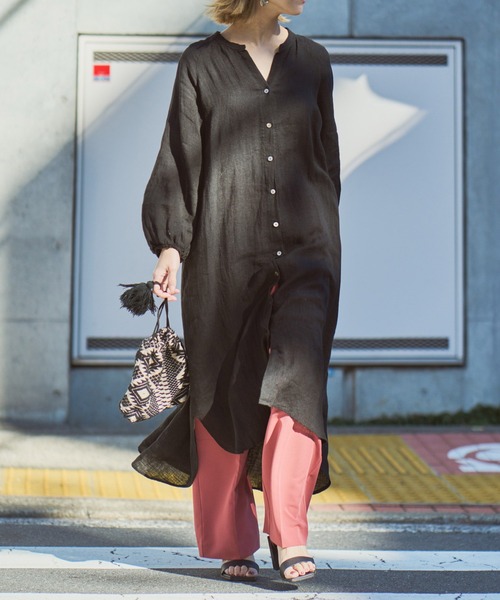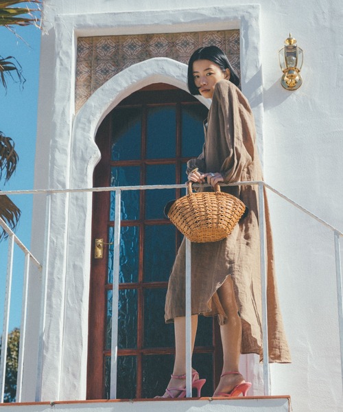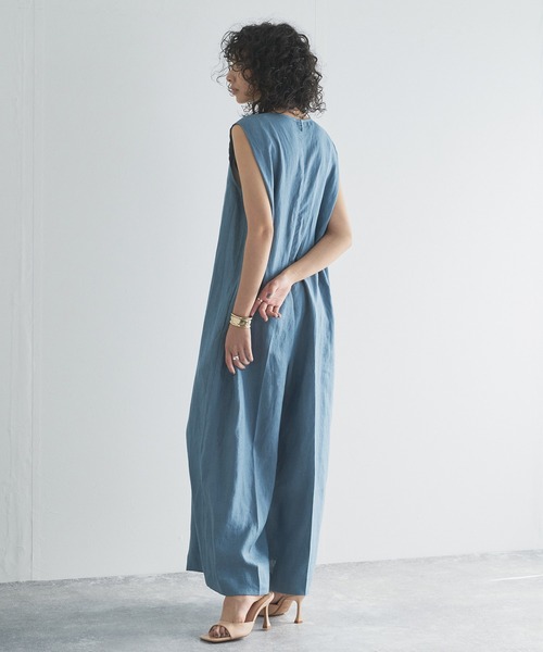 リネンのルーズな素材感が抜け感ある、大人ボリュームスリーブワンピース