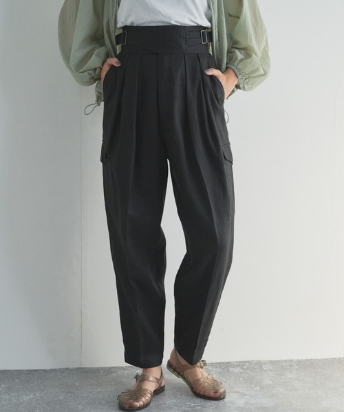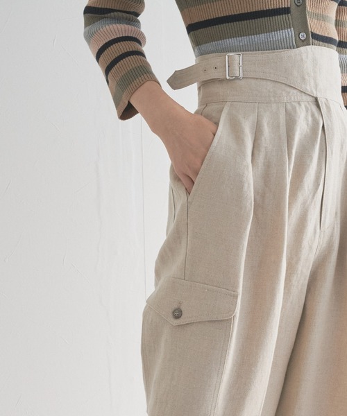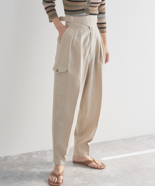 すっきりとした印象のセンタープレスとストレートシルエットで美しいレッグラインを叶えるリネンパンツ。